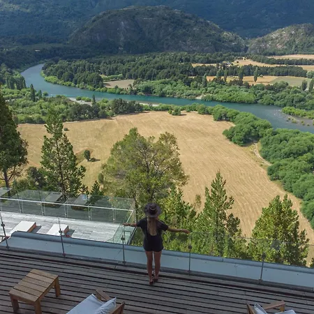 Uman Lodge Patagonia Chile Futaleufú se encuentra a una distancia de 2 km del Bochinche Rafting y ofrece una piscina exterior con sauna para que los huéspedes se relajen y desconecten.